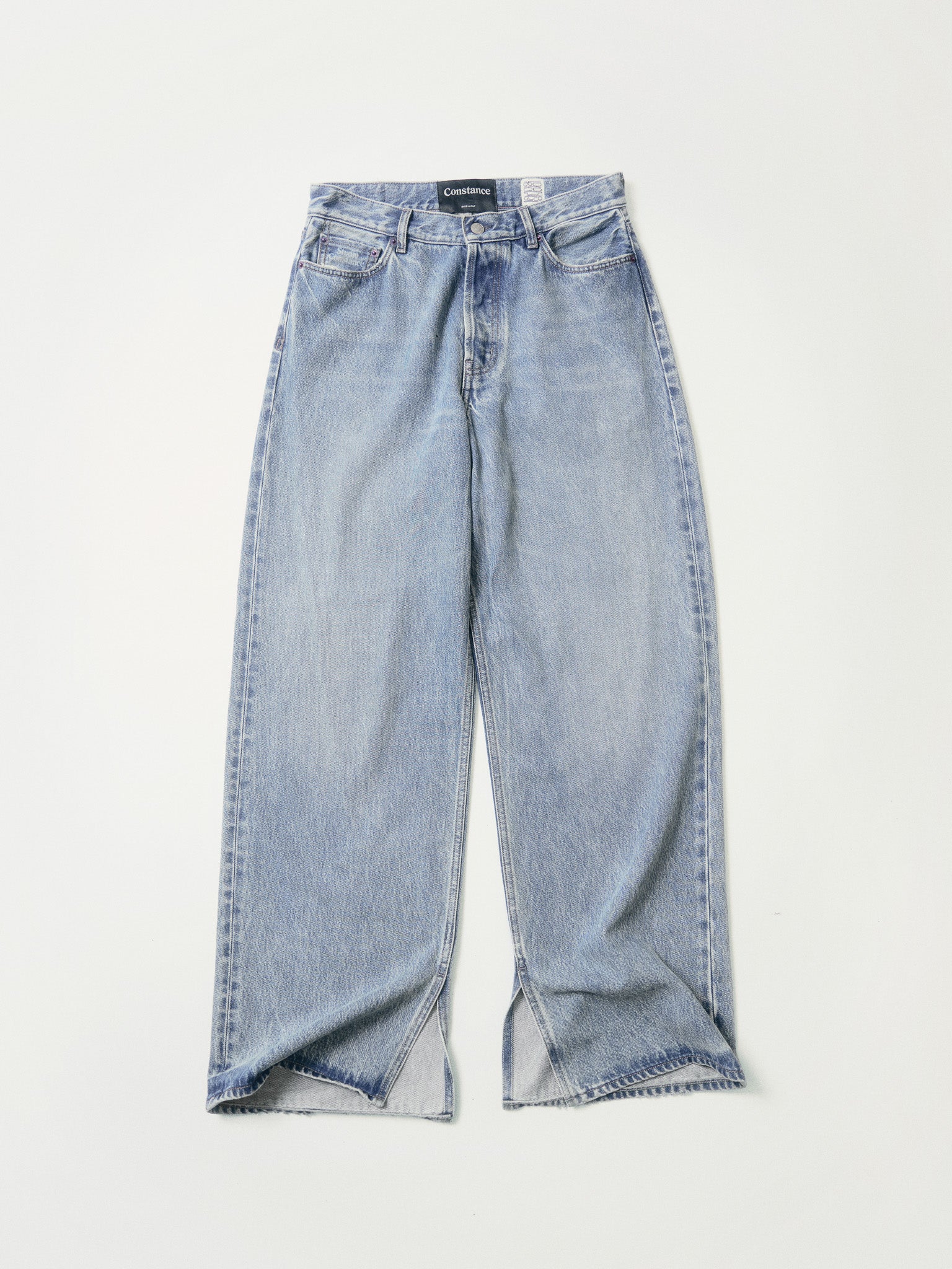 Supersoft denim in a base made of cotton and lyocell, in the Studio Constance signature light vintage wash. Wide, straight leg with a slit at leg opening. Extra long length.